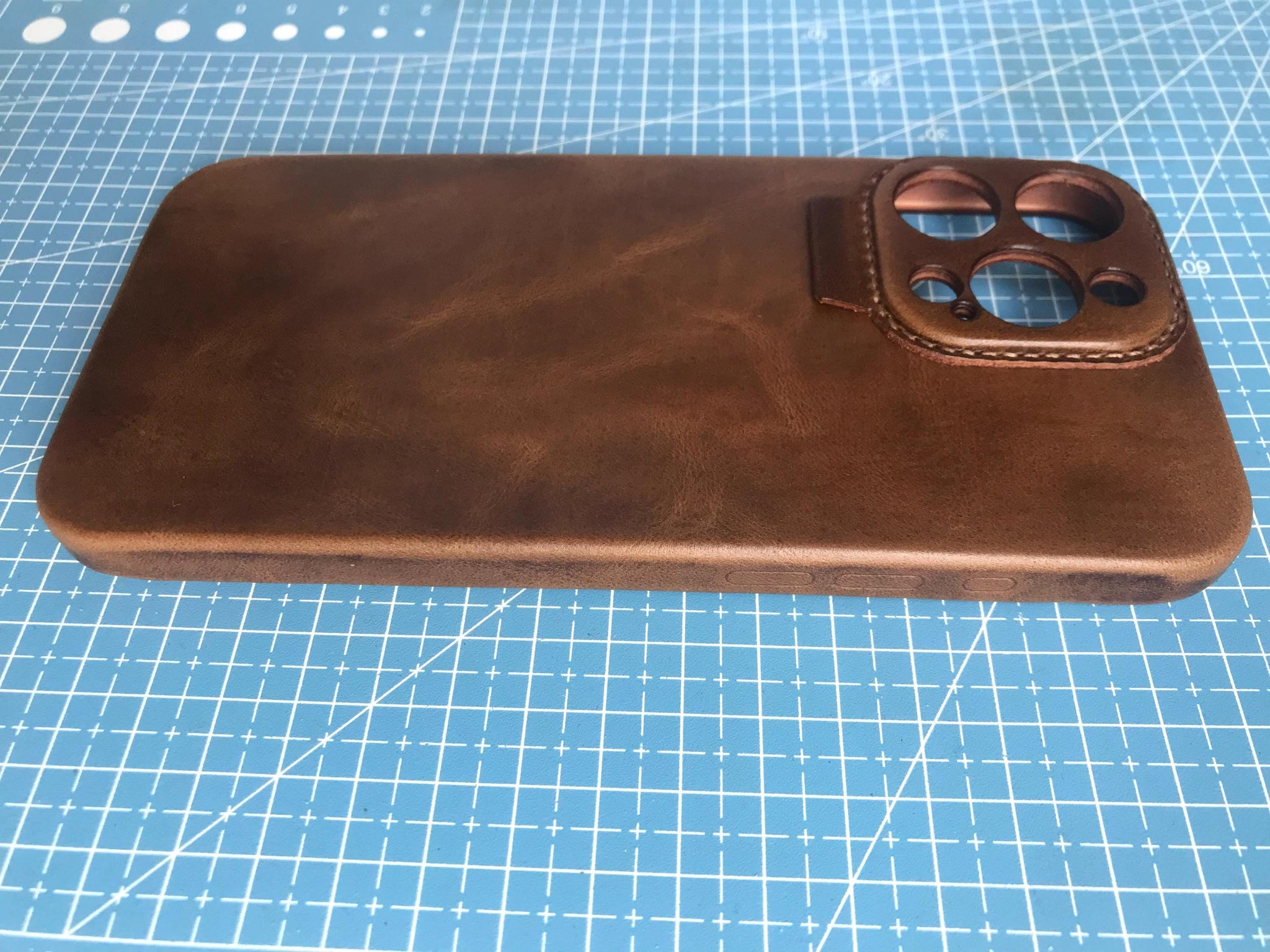 Different from case cover leather color, the back leather color is original vegetable tanned leather color, the back leather purpose is to better protect your iPhone as it touches your iPhone directly, original leather without tanned processing is the best natural material option, it's NOT any other cheap materials, please don't misunderstand it.